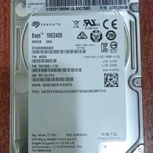 Disco duro enterprise Seagate Exos 10E2400 con 600GB de capacidad, interfaz SAS 12Gb/s, 2.5″ SFF y 10 000 RPM de velocidad. Ideal para servidores, almacenamiento empresarial, RAID y soluciones de datacenter.