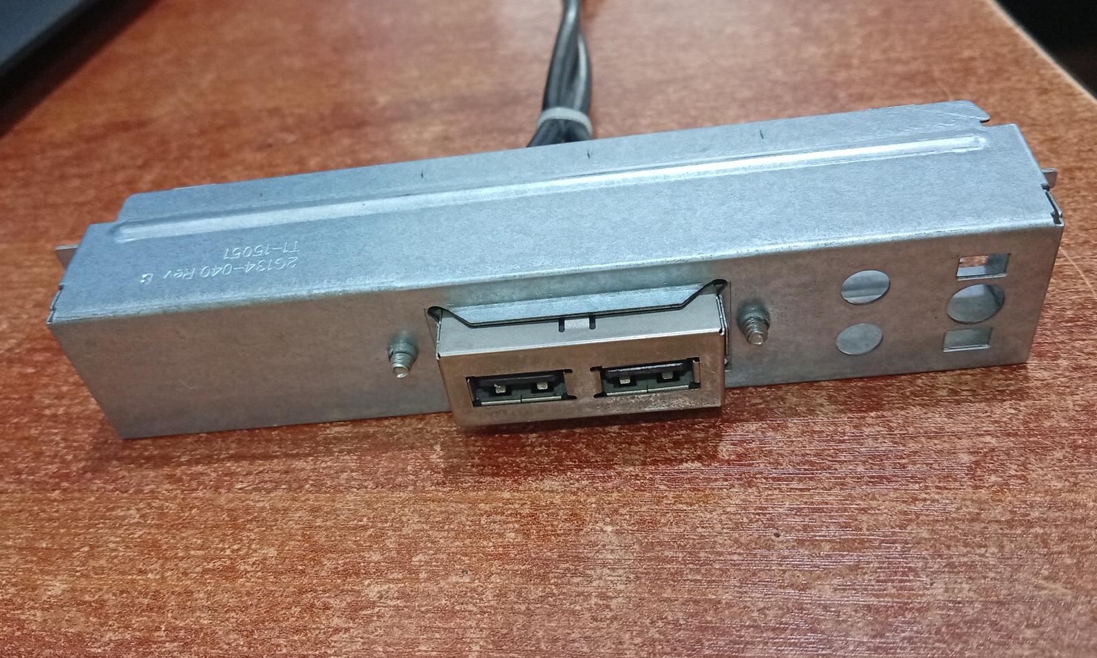 Repuesto original HP para servidores ProLiant series G5. Módulo de panel frontal que incluye dos puertos USB 2.0 y cableado de conexión interna original. Ideal para restauración de servidores o reemplazo de puertos frontales dañados. Componente testeado y extraído de equipo funcional.