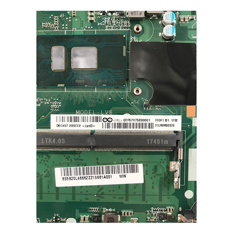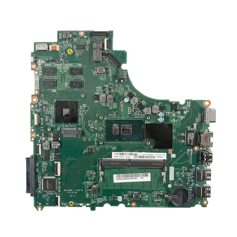Placa base revisada (Rev F) para Lenovo IdeaPad serie V310/V510. Compatible con procesadores Intel SR2EZ (i7‑6ta gen) y sin tarjeta gráfica dedicada.