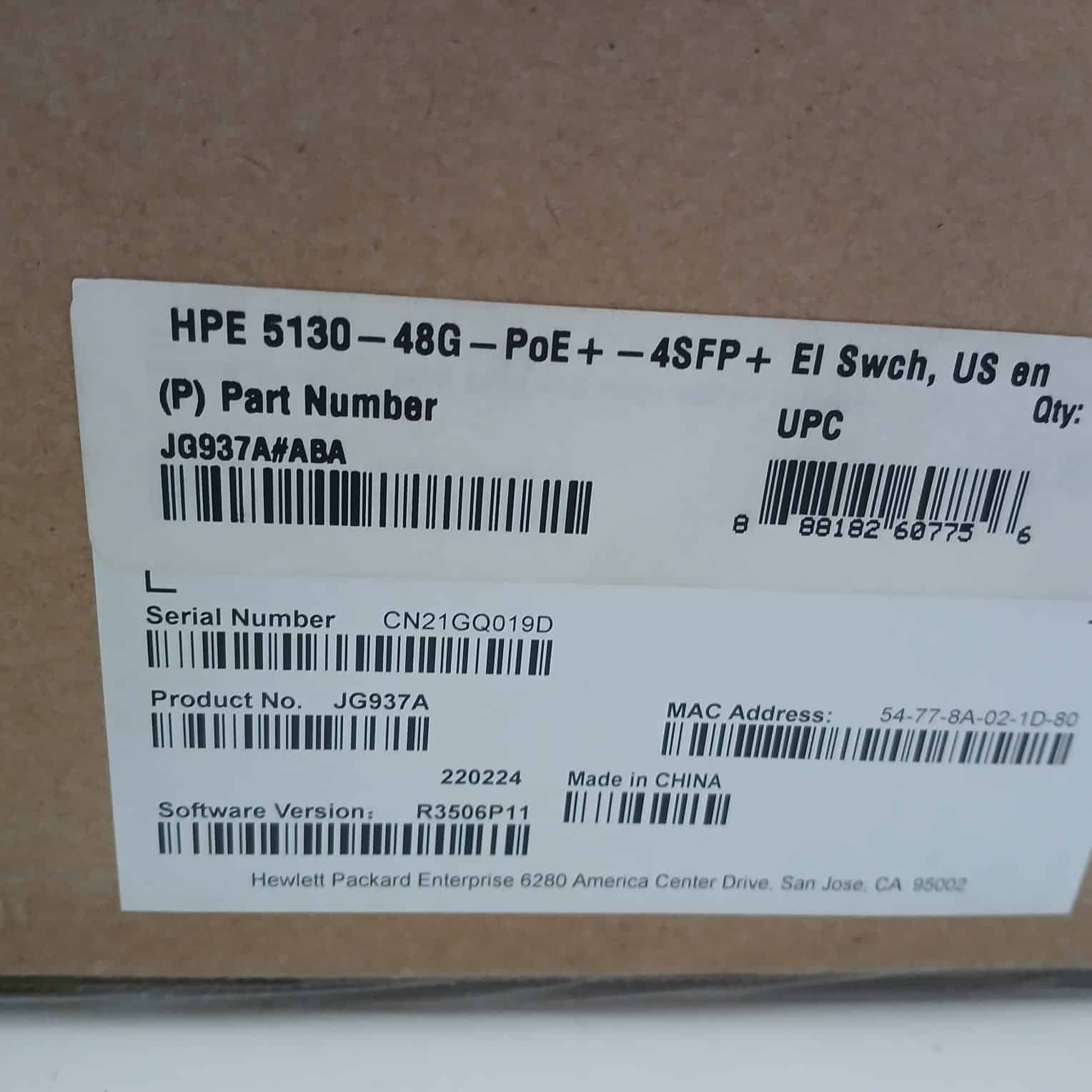 HPE 5130 48G PoE+-4SFP+ EI Switch JQ937A 48 Port Gigabit L3 Nuevo