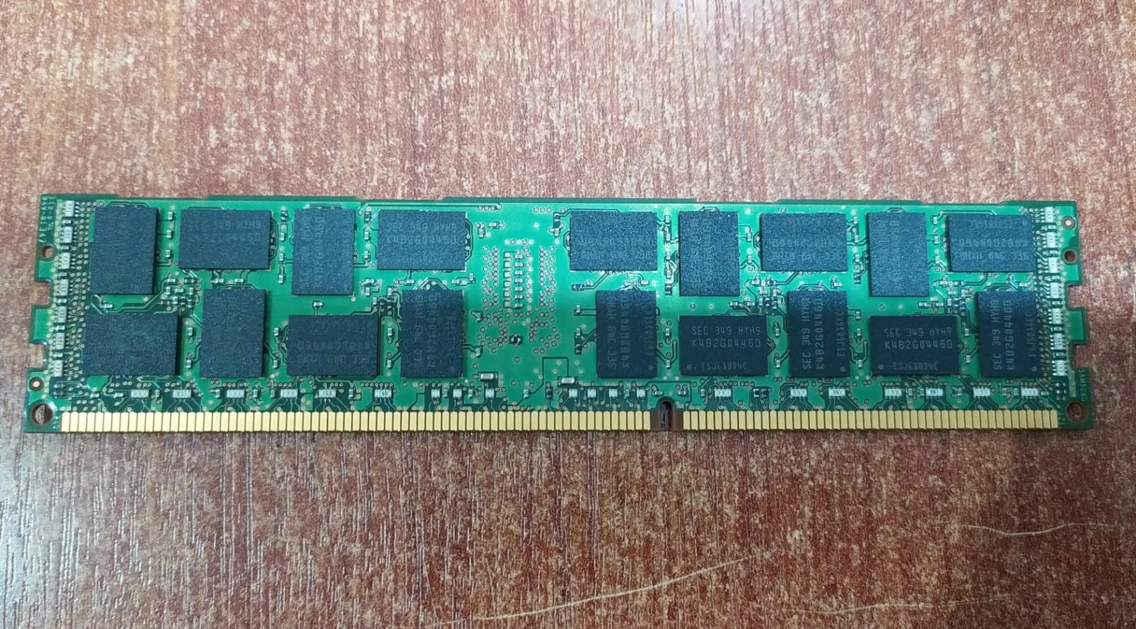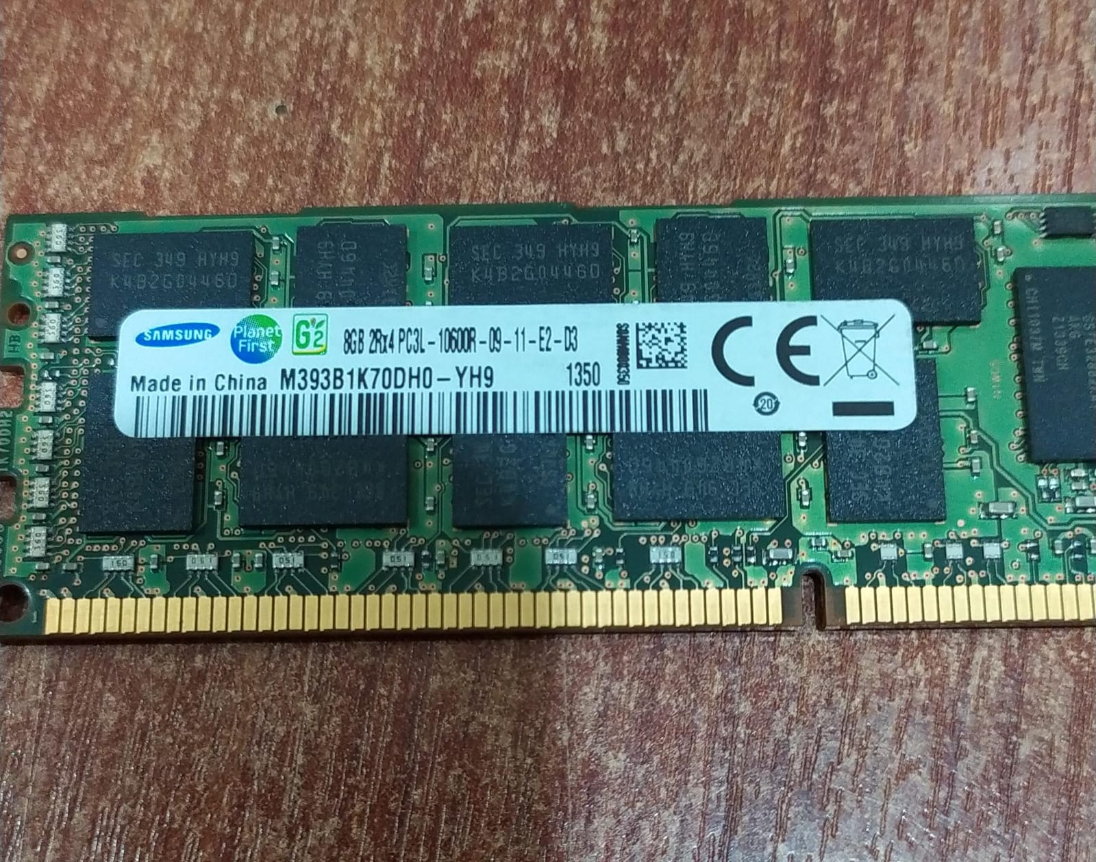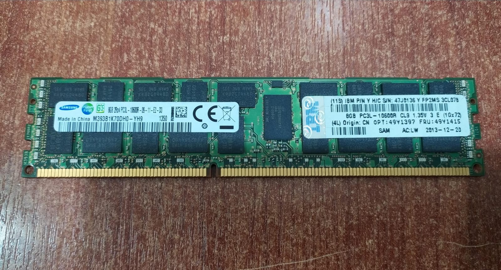 Módulo de memoria RAM Samsung 8 GB DDR3 ECC Registered, modelo M393B1K70DH0-YH9. Ideal para servidores Dell, HP o IBM que requieran rendimiento estable y memoria de alto estándar. Probada, funcionando al 100 %.