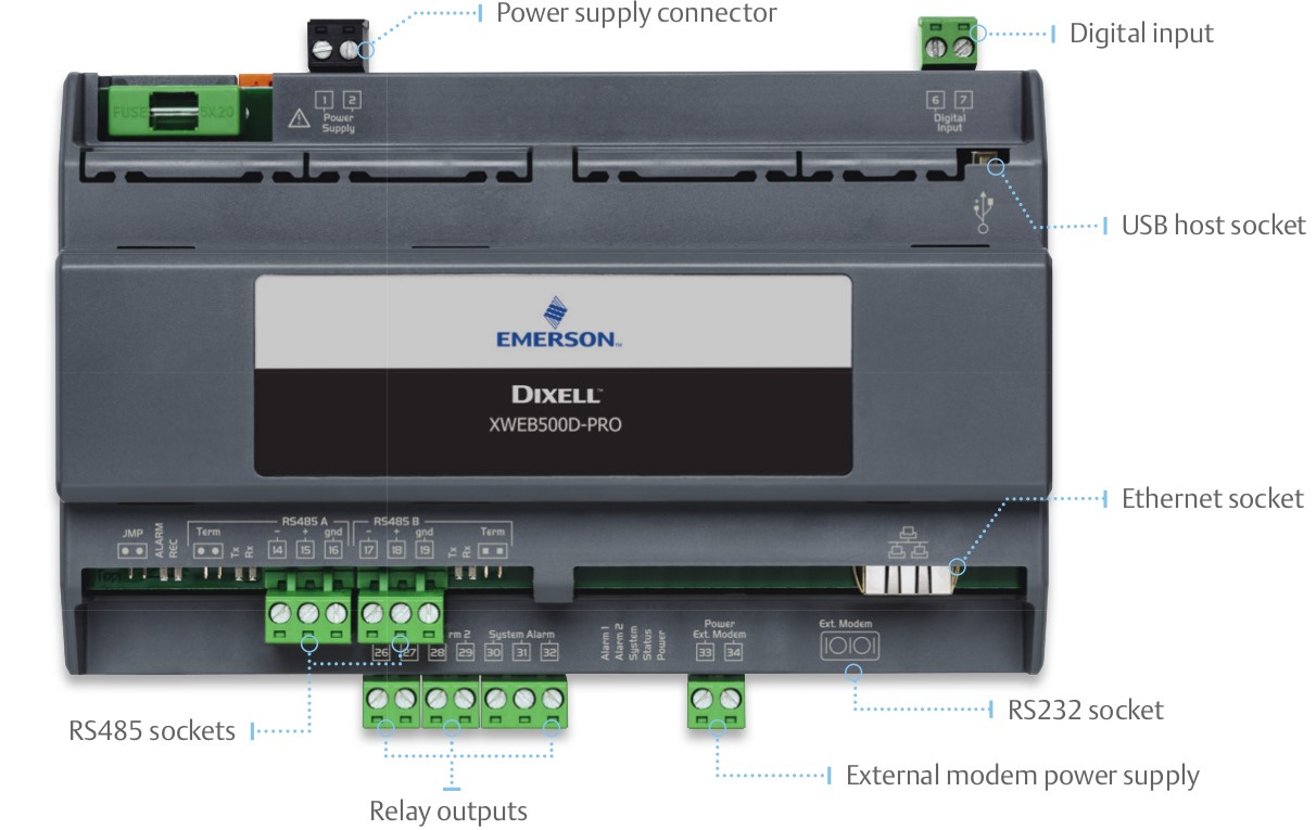 - Conectividad: Permite la conexión a controladores Dixell y otros dispositivos compatibles a través de ModBUS-RTU.