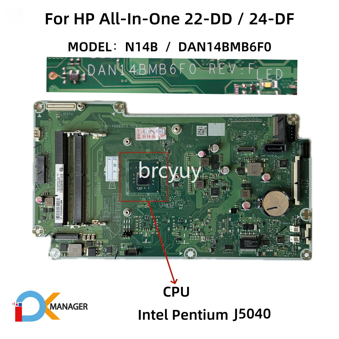 Placa madre original HP DAN14BMB6F0 REV F con CPU Intel Pentium Silver J5040 (4 núcleos, hasta 3.2 GHz), diseñada para equipos All‑in‑One HP 22‑DD y 24‑DF. Usada, probada y 100 % funcional.