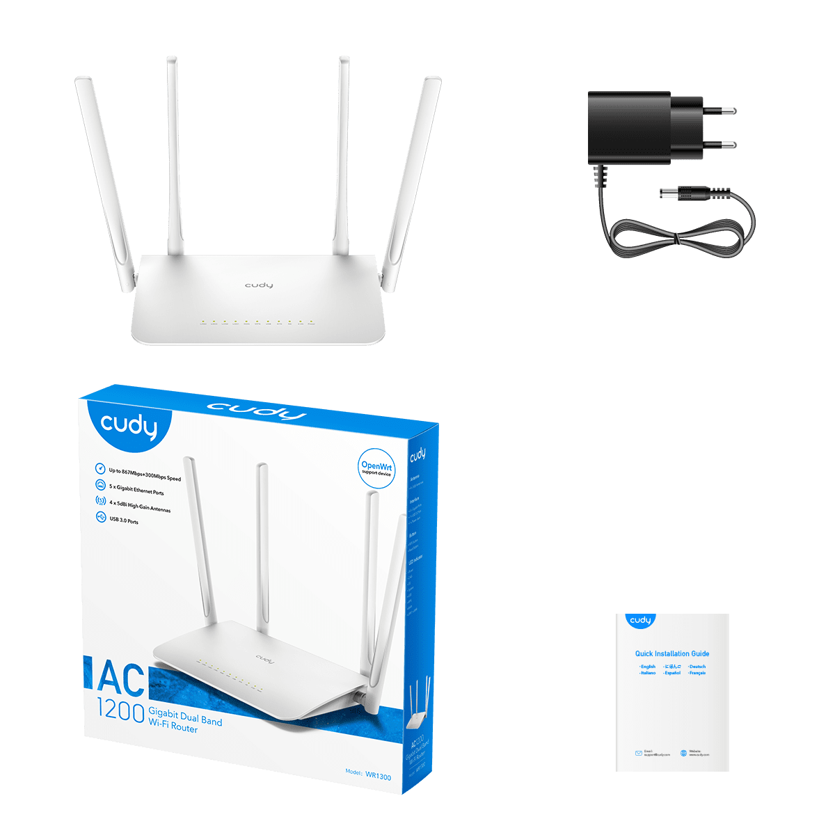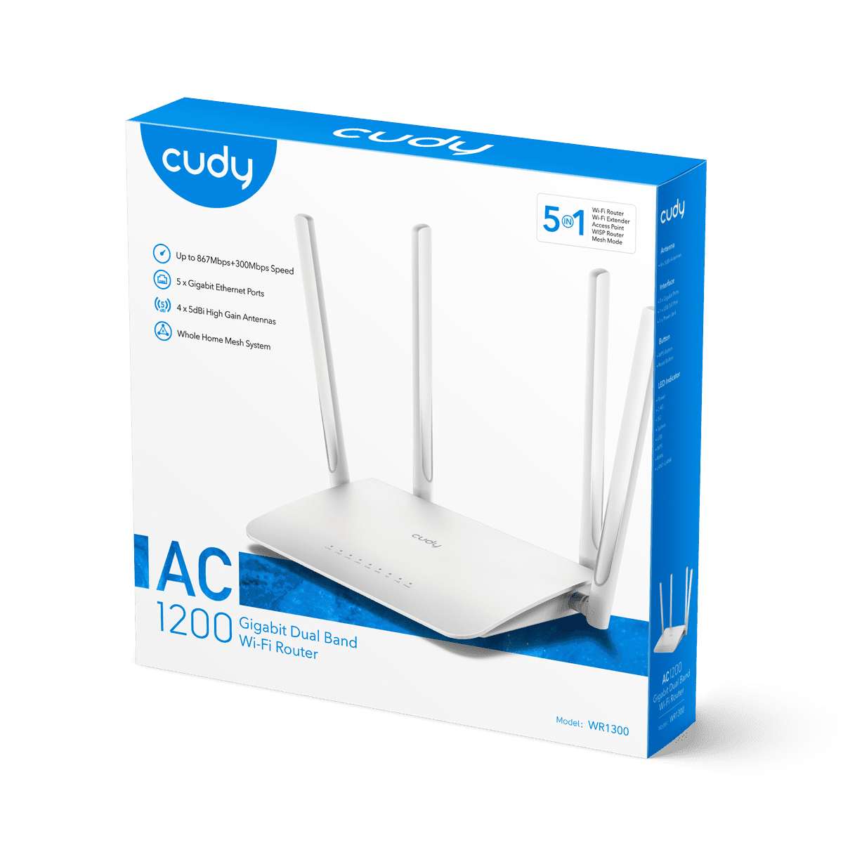 ROUTER Wi-Fi | CUDY | WR1300 | AC1200 Gigabit Dual Band | 12V 1A