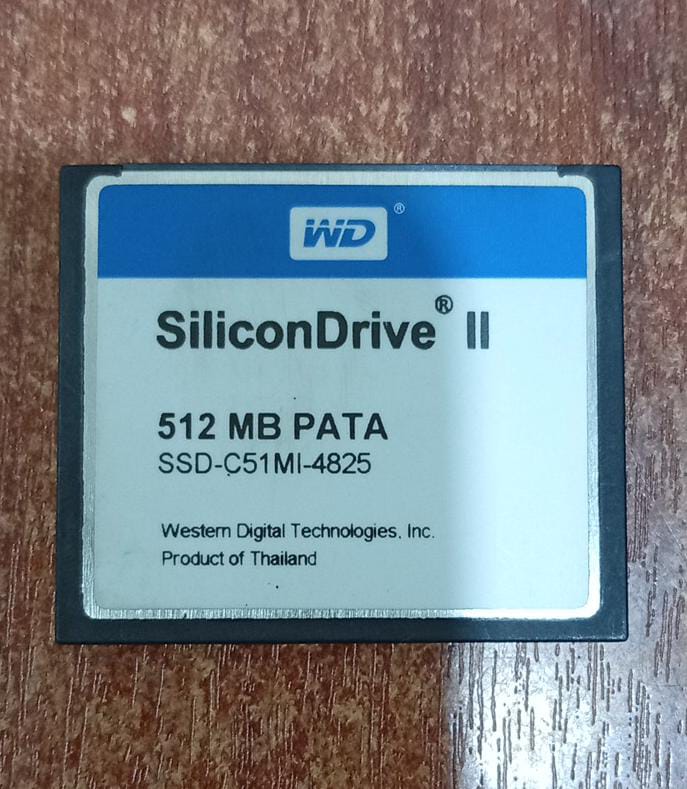 SSD CompactFlash industrial WD SiliconDrive II 512MB PATA modelo SSD-C51MI-4825, seminuevo, ideal para equipos legacy, automatización, CNC, PLC y sistemas embebidos. Repuesto confiable para hardware antiguo con interfaz CF/IDE.