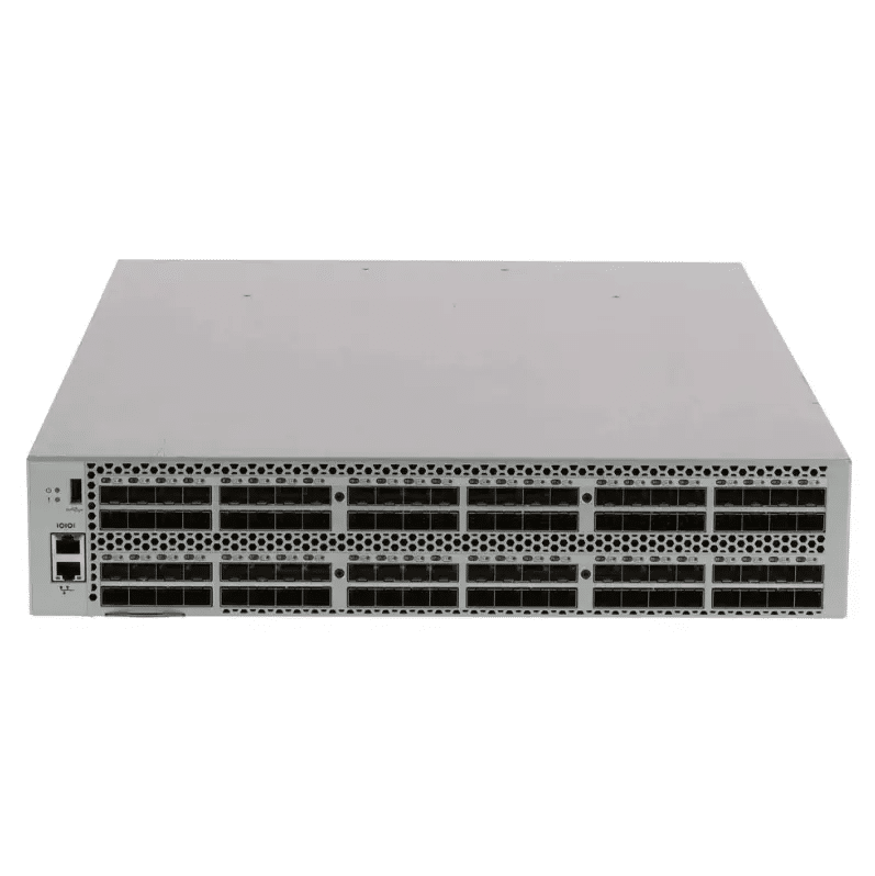 El HP StoreFabric SN6500B es un conmutador de canal de fibra (Fibre Channel) diseñado para entornos empresariales que requieren alta disponibilidad y rendimiento en la conectividad de almacenamiento. Este modelo específico, C8R42A, cuenta con 96 puertos activos y es ideal para centros de datos y redes de almacenamiento en la nube.
