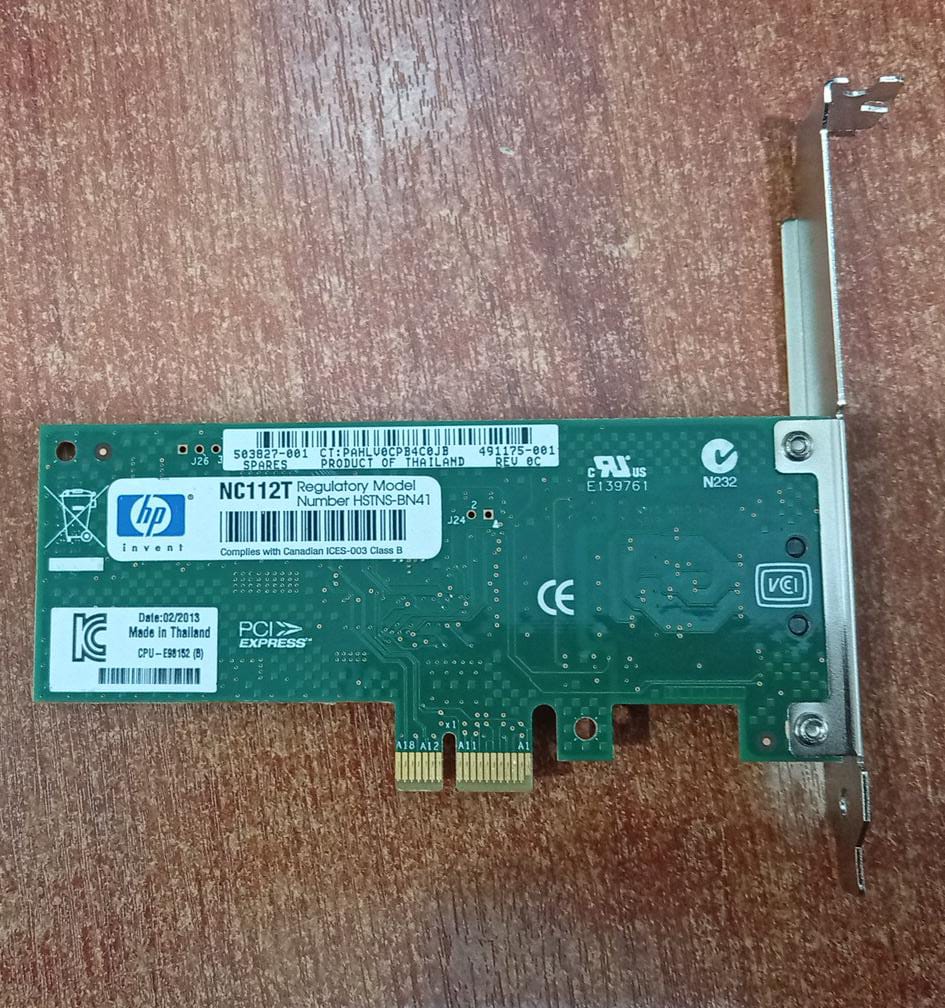 Tarjeta de red HP NC112T seminueva, ideal para servidores y PCs con ranura PCIe x1. Ofrece conexión Ethernet Gigabit 10/100/1000 Mbps por puerto RJ45, con chipset Intel 82574L y bracket metálico de perfil estándar instalado. Excelente opción para ampliar conectividad de red estable y confiable.